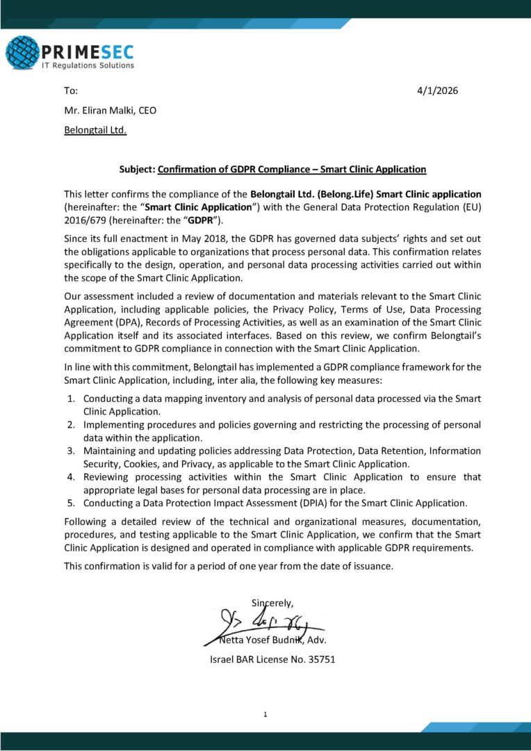 Belong.life adheres to the European Union General Data Protection Regulation (GDPR) the world’s strongest set of data protection rules.
